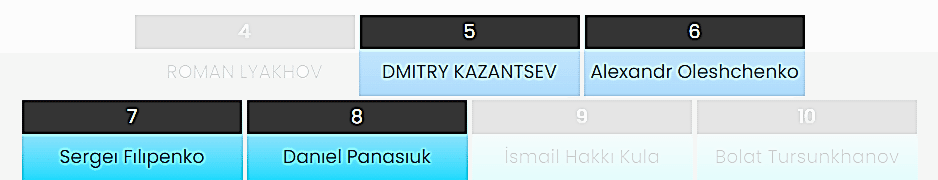 - Players offer matches to players on the left side of their row and to the right of the top row. (ın the example below, Danıel can challenge the other actıve players: sergeı, Alex and Dmitry)